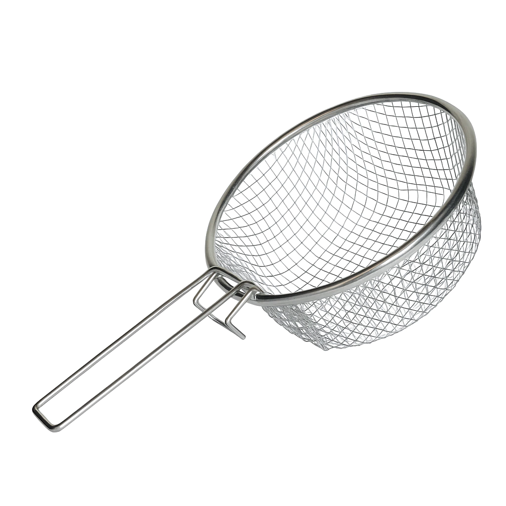 Práctico, resistente y funcional, este canasto freidor plegable de metal es ideal para realizar frituras de manera rápida y segura. Su diseño redondo y su estructura firme permiten escurrir el aceite fácilmente, ocupando poco espacio al guardarlo.